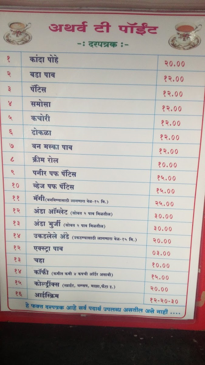 The menu highlights include their renowned tea, which local patrons rave about, making it a must-try for anyone visiting. Beyond tea, Atharva offers an assortment of delightful snacks, including चहा नाष्टा and वडापाव, perfect for a quick bite. Don't forget to indulge in their icy treats, as ice cream is also on the menu, adding a delightful twist to the experience.
